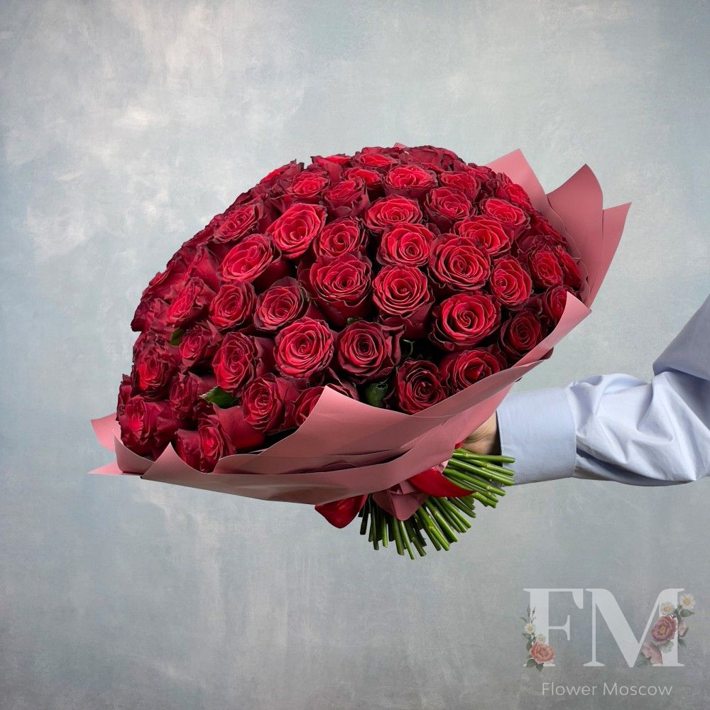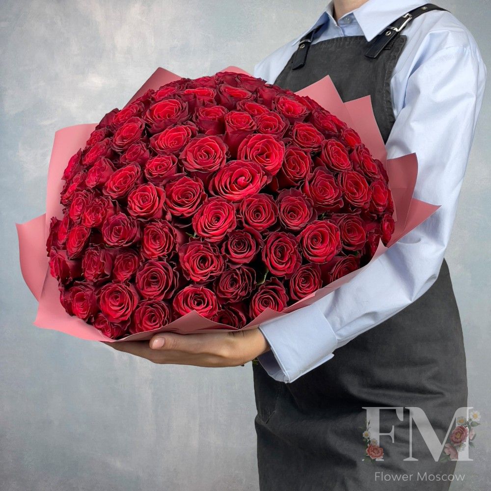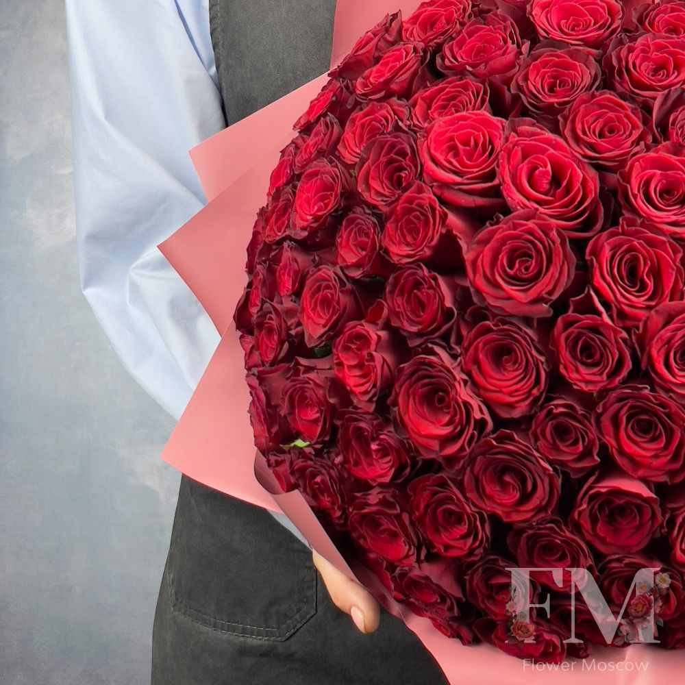 Порадуйте своих близких и друзей красивым и стильным подарком – "Букет из одноголовых роз "Rhodos" 101шт" от FlowerMoscow.