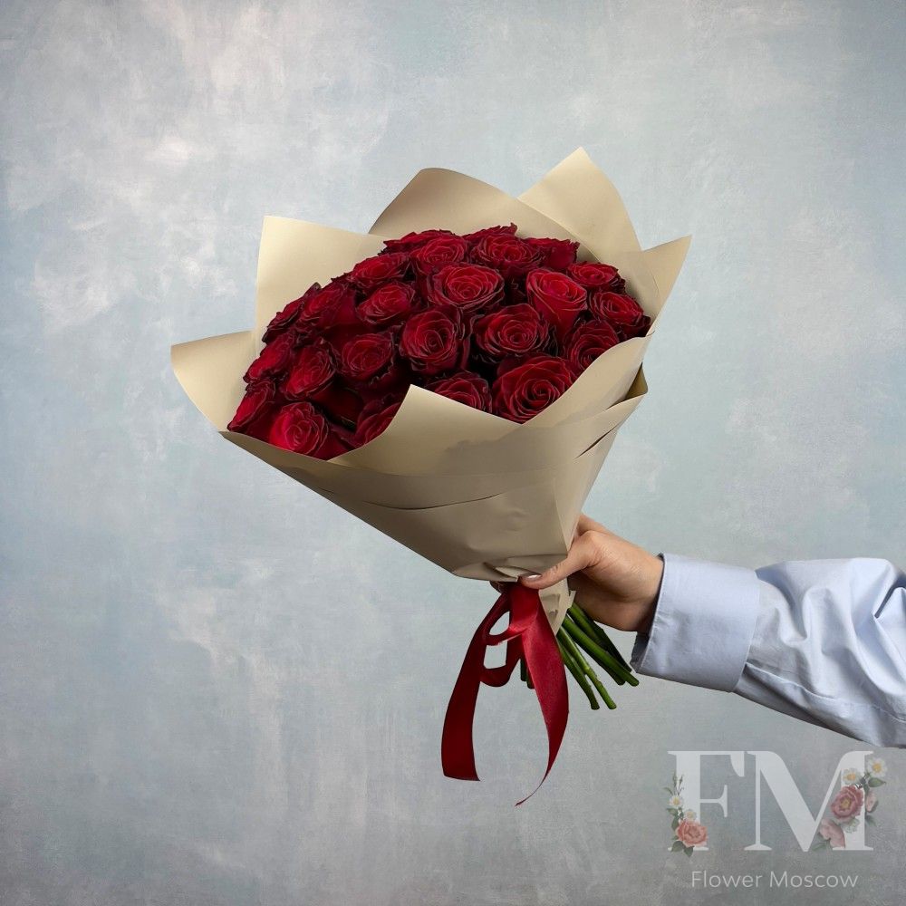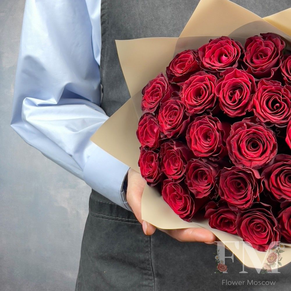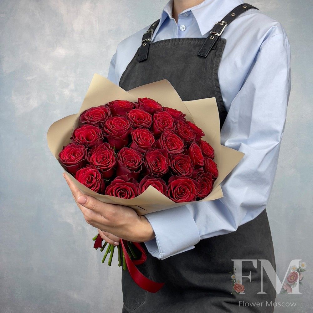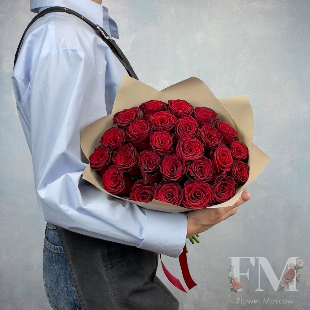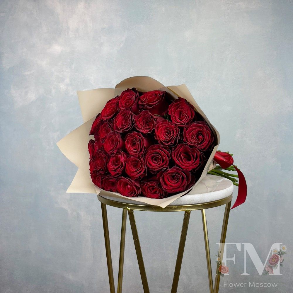 Порадуйте своих близких и друзей красивым и стильным подарком – "Букет из 25 одноголовых роз "Rhodos" " от FlowerMoscow.